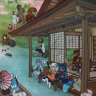 Known for their festivals of lights and New Years many from higher families vacation here on a regular. With exotic entertainment and causal hosts for company this Inn has made itself well known in the last 350+ years.Though started by Ike and Yuki one of several heirs to the former water clan Honda. They were both brothers with the same empathetic heart of helping others and well like all men beautiful women. However Yuki would find himself falling for a fire fan dancer who later would be come his lover. The three of them created the perfect safe haven for their kind and place for those needing a welcomed rest.